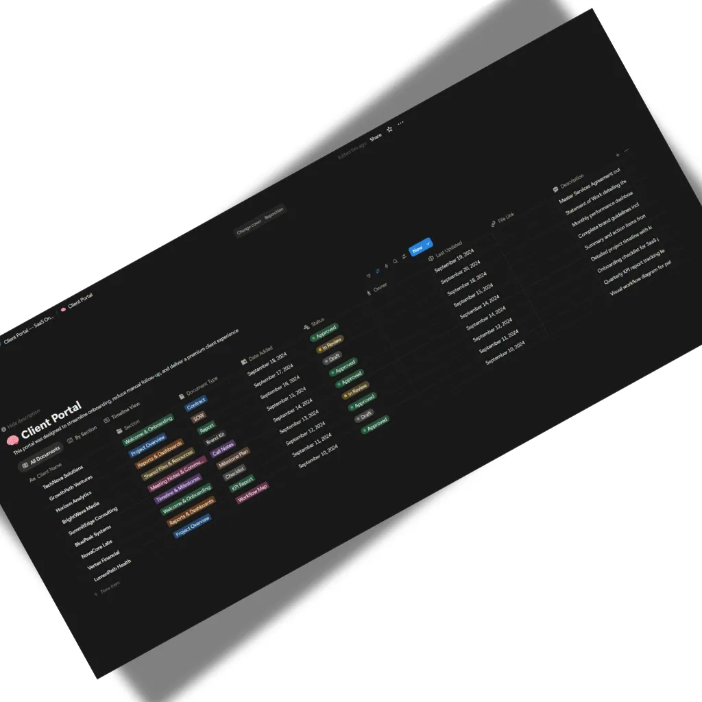 Design onboarding systems that freed up hours of admin time while improving client satisfaction.