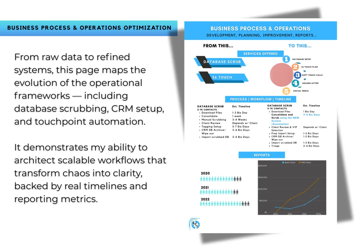 Operations & Data – Streamlining workflows, managing databases, and turning analytics into actionable growth strategies.